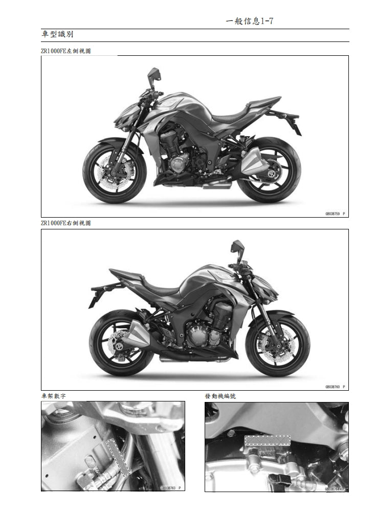 適用於川崎2014年z1000維修參考資料(含英文原文與繁體譯文,含扭矩、電路、故障碼)