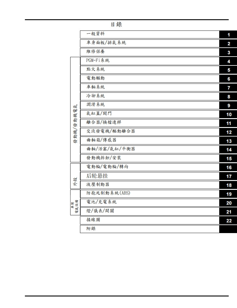 維修手冊主要供經過培訓的科技人員在設備齊全的車間使用。 但是,它包含足够的細節和基本資訊,囙此對希望執行自己的基本維護和維修工作的車主很有用。 只有在車主擁有完成工作所必需的手工和特殊維修工具的情况下方可工作。
