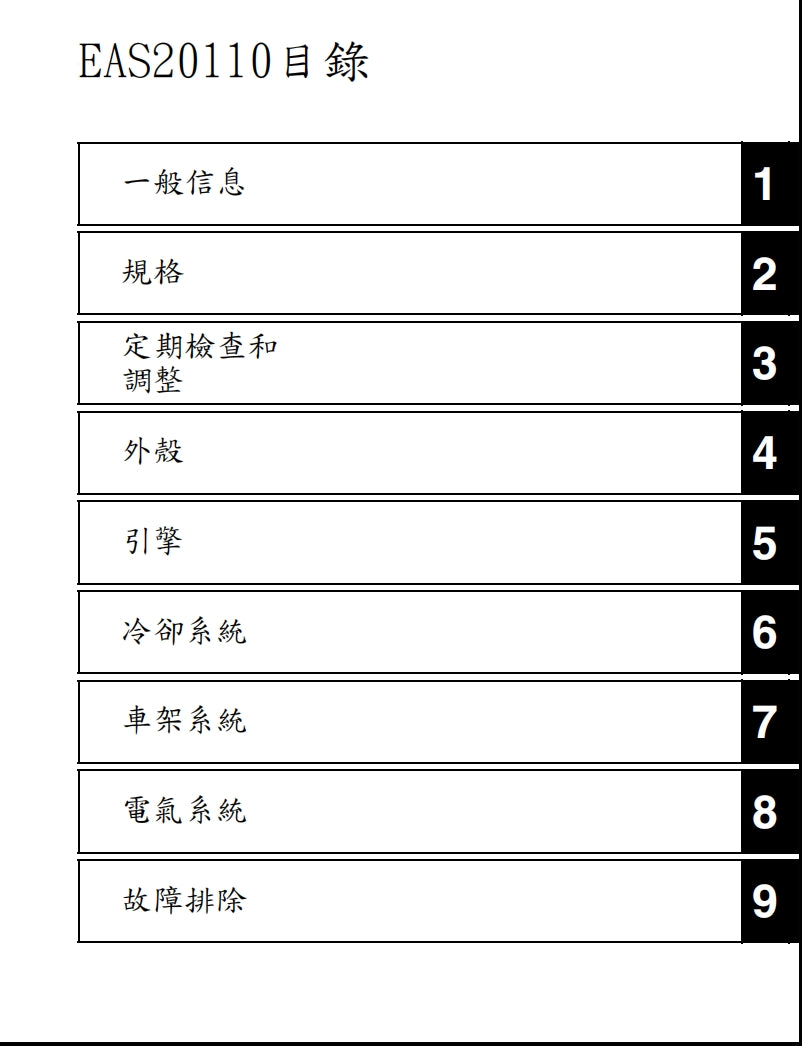 維修資料主要供經過培訓的科技人員在設備齊全的車間使用。 但是,它包含足够的細節和基本資訊,囙此對希望執行自己的基本維護和維修工作的車主很有用。 只有在車主擁有完成工作所必需的手工和特殊維修工具的情况下方可工作。