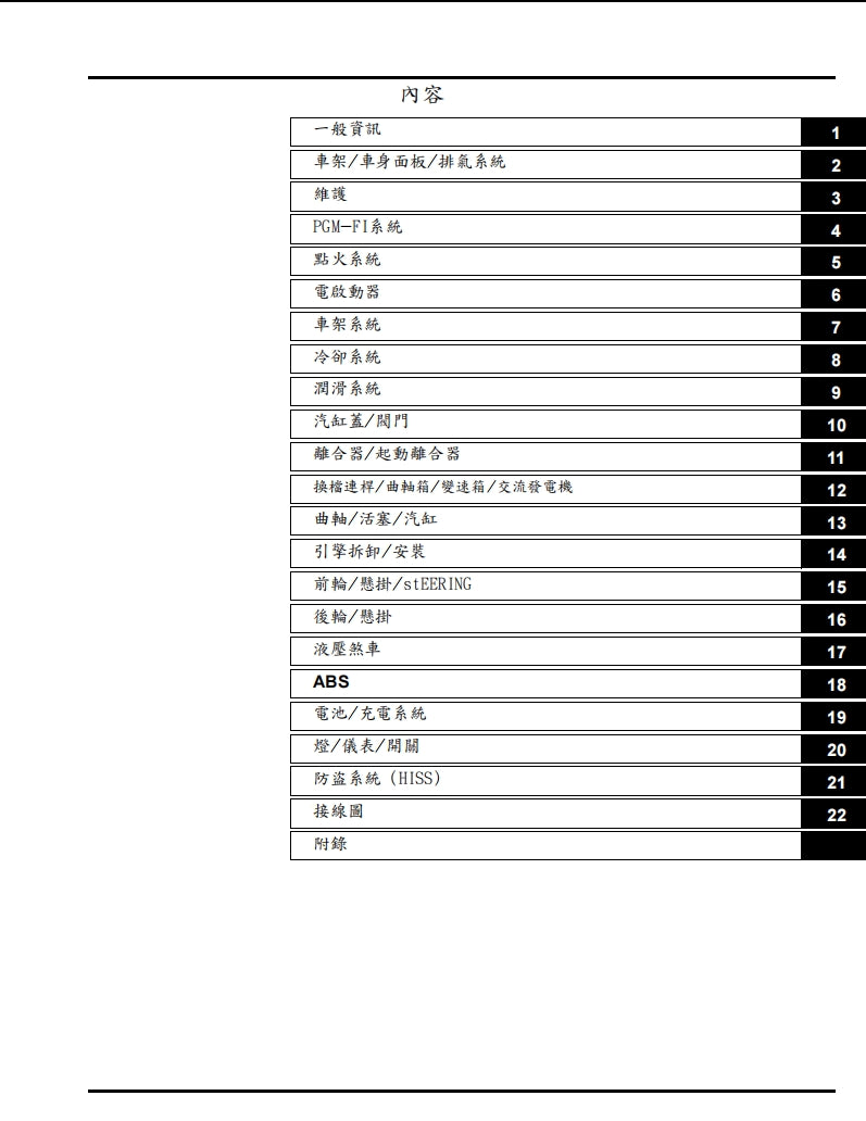 維修資料主要供經過培訓的科技人員在設備齊全的車間使用。 但是,它包含足够的細節和基本資訊,囙此對希望執行自己的基本維護和維修工作的車主很有用。 只有在車主擁有完成工作所必需的手工和特殊維修工具的情况下方可工作。