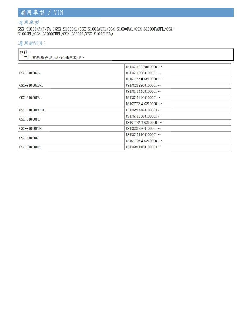 適用於2015-2018鈴木GSX-S1000維修參考資料(含英文原文與繁體譯文,含扭矩、電路、故障碼)