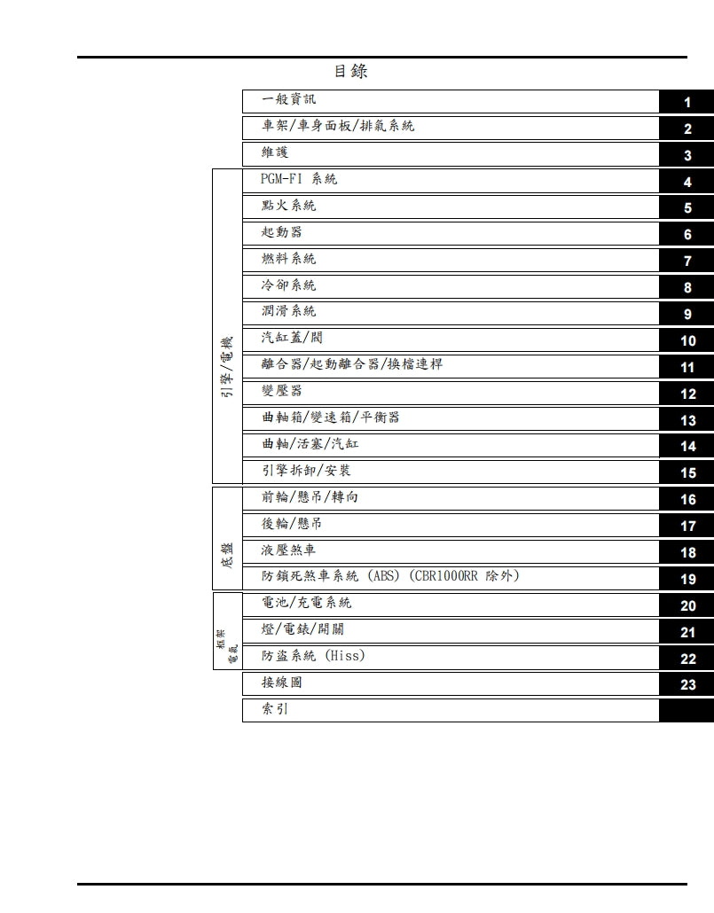 2017年CBR1000RR維修參考資料(含英文原文與繁體譯文,含扭矩、電路、故障碼)