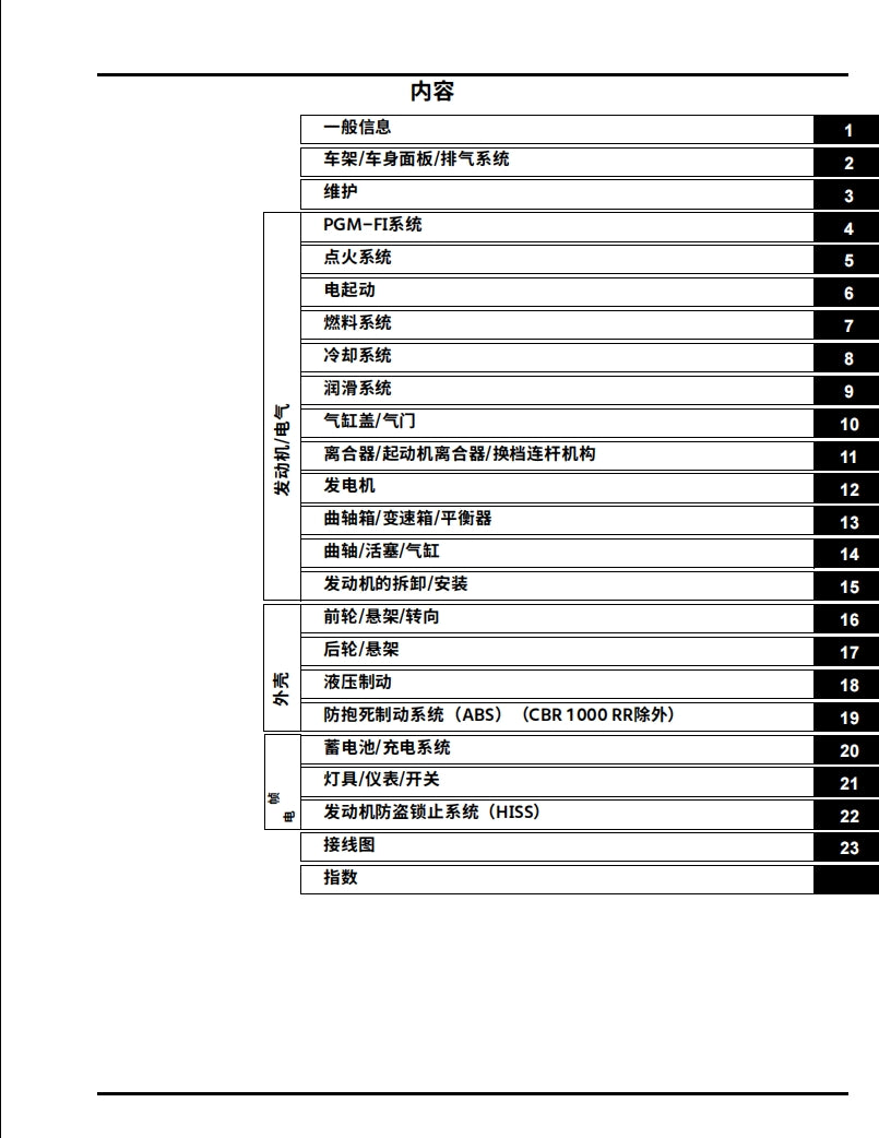 適用於2017 本田CBR1000rr维修資料简体中文和英文全车扭矩表拆解图线路图故障代码