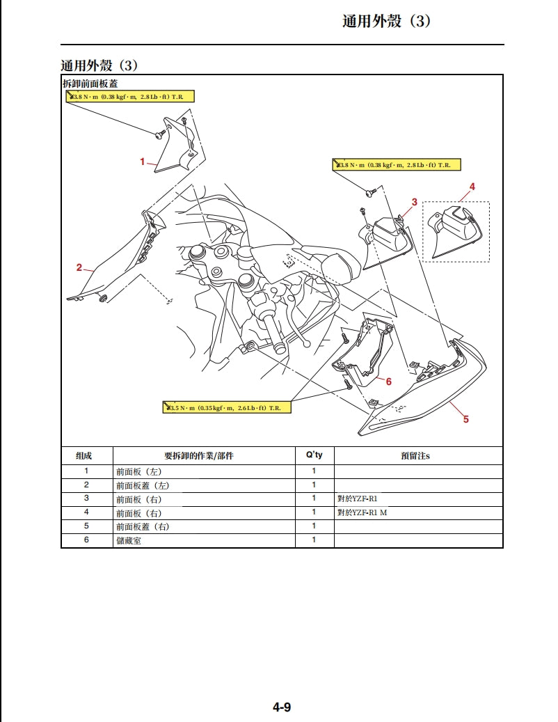 適用於2020年雅馬哈R1維修參考資料(含英文原文與繁體譯文,含扭矩、電路、故障碼)