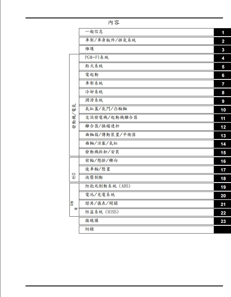 適用於2023本田CB750維修參考資料(含英文原文與繁體譯文,含扭矩、電路、故障碼)
