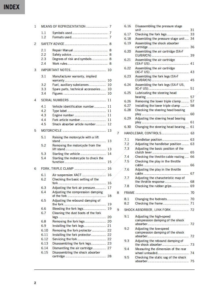 KTM 2023 250SX F XC F T Service Manual Vehicle parts disassembly diagram fault code query vehicle torque data and circuit diagram